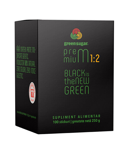 GREEN SUGAR PREMIUM 1:2 – Black is the new Green, brandul companiei LABORATOARELE REMEDIA și marcă înregistrată la nivelul Uniunii Europene, este singurul îndulcitor 100% natural, cu ZERO calorii și ZERO indice glicemic, recomandat de medicii nutriționiști și diabetologi ai Societății de Nutriție.